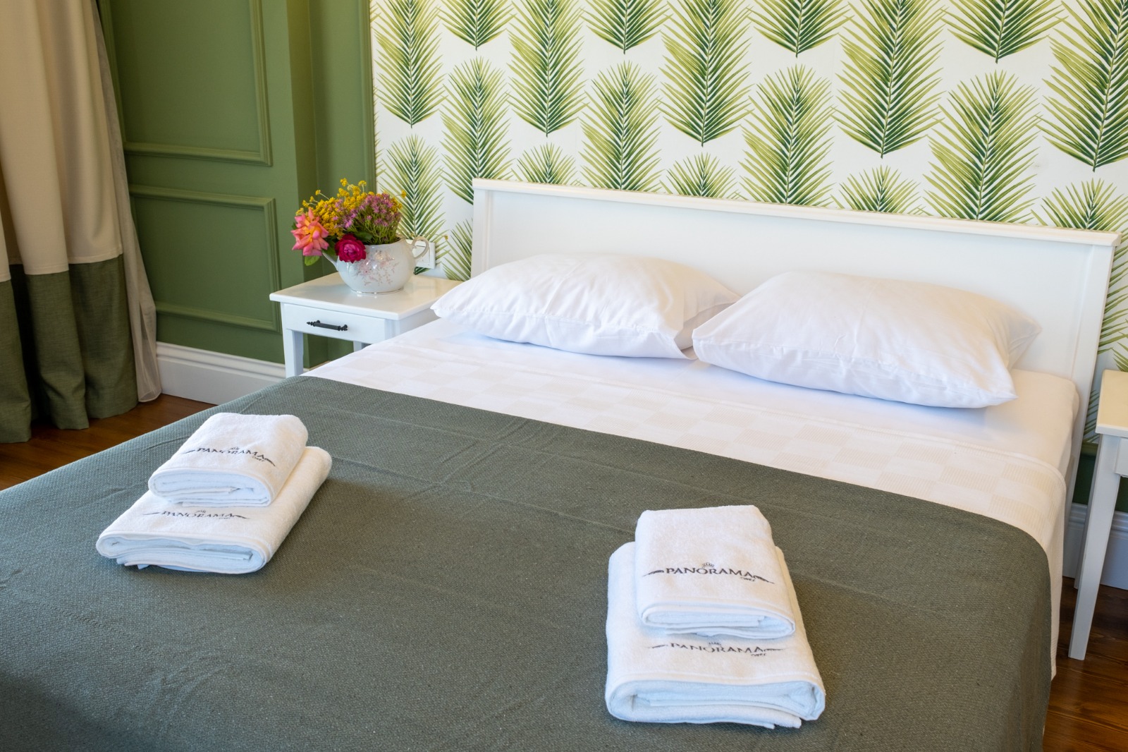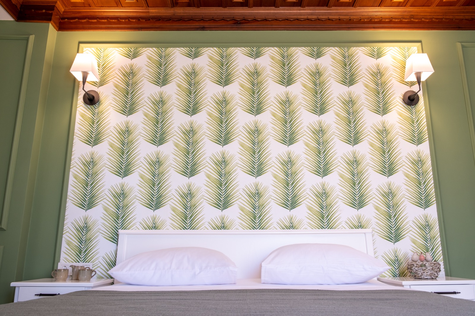 Tavanlar ceviz oymalı ahşap olduğu için yakışacağını düşündük yeşilin . Nasıl olmuş sizce . Oda Ada ya bakıyor . 18 metrekare . Mobilyalar beyaz masif . Banyodan büyük bir balkona çıkılıyor. Banyo bahçe manzaralı.